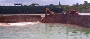 Obra de Construção de uma nova Dársena no Terminal Marítimo Especializado de barra do Riacho, incluindo a interligação com a estrutura já existente e enchimento da nova contendo 4 berços de barcaças (berço para Empurradores, Berço para Rebocadores e dois Berços para Barcaças de Celulose) destinados à substituição do terminal de atracação existente, atualmente destinado à atracação e desembarque das balsas de celulose que operam no porto.